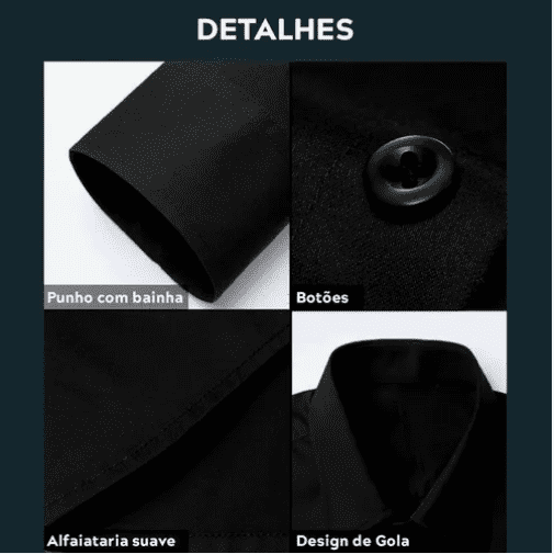 – Gola e punhos com entretela (firmeza e melhor caimento);